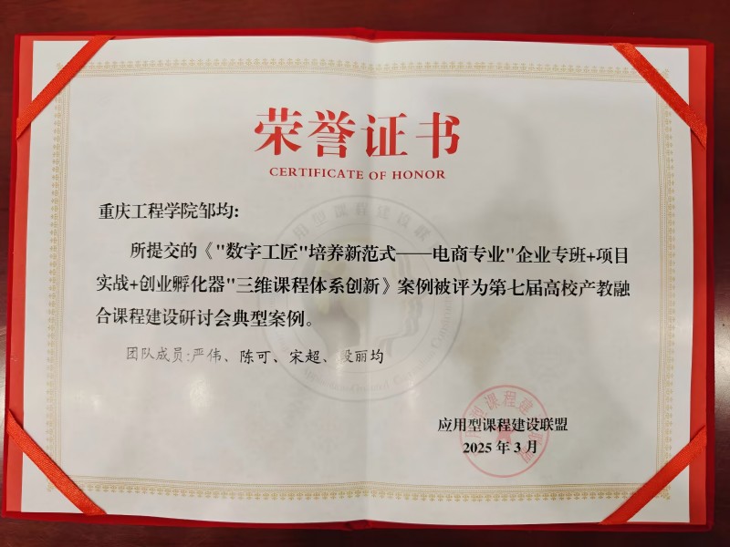 会上,我校新媒体电商学院案例《数字工匠培养新范式——电商专业企业专班+项目实战+创业孵化器三维课程体系创新》被评为第七届高校产教融合课程建设研讨会典型案例。
