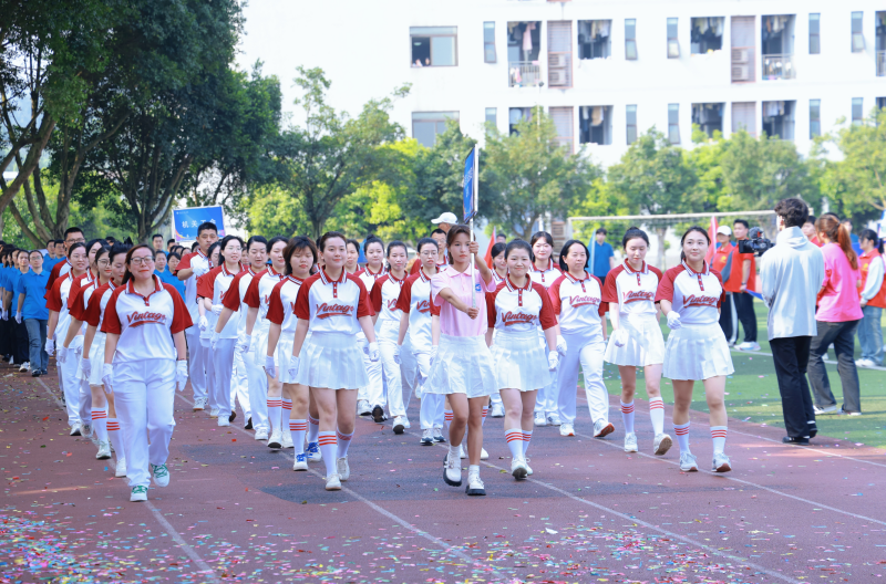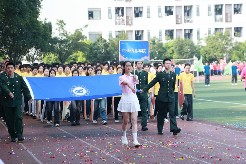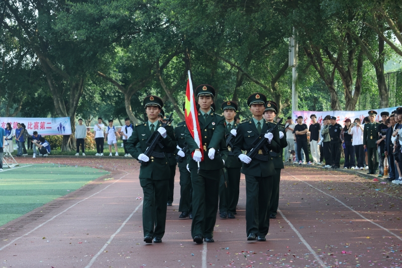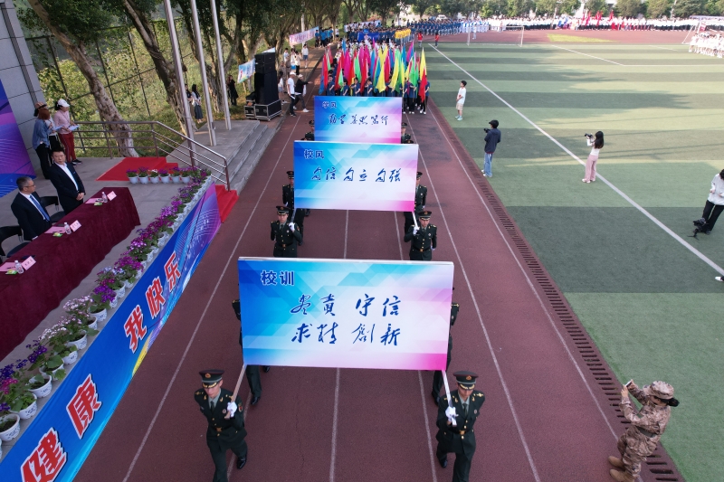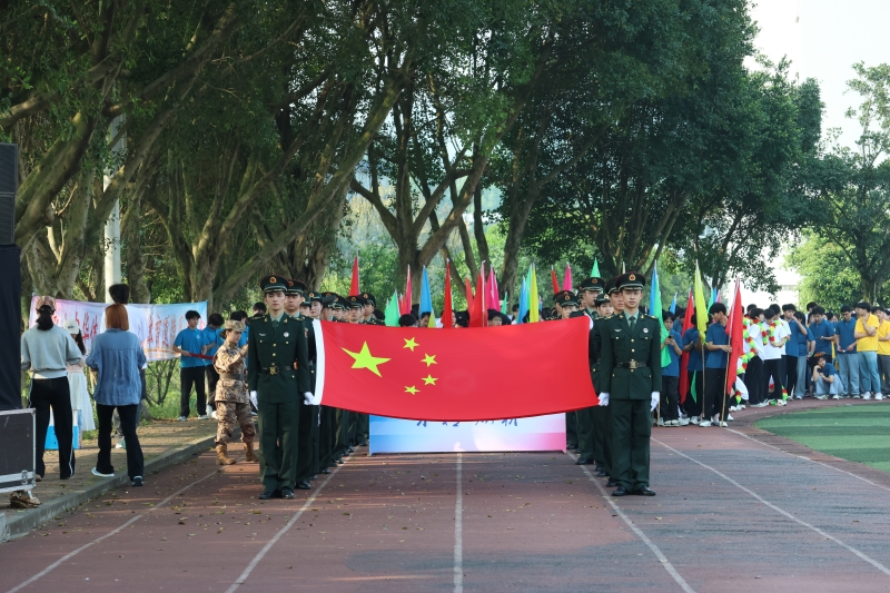 激昂的《运动员进行曲》奏响,瞬间点燃了全场的激情,开幕式第一项仪式——各方阵入场。首先映入眼帘的是国旗方阵,他们迈着坚定有力的步伐正步走来,校旗方阵紧跟其后,迎风招展。