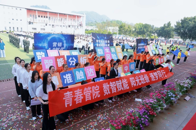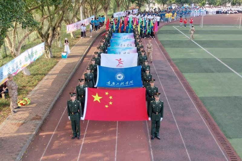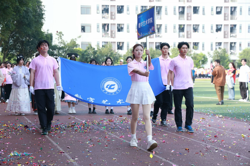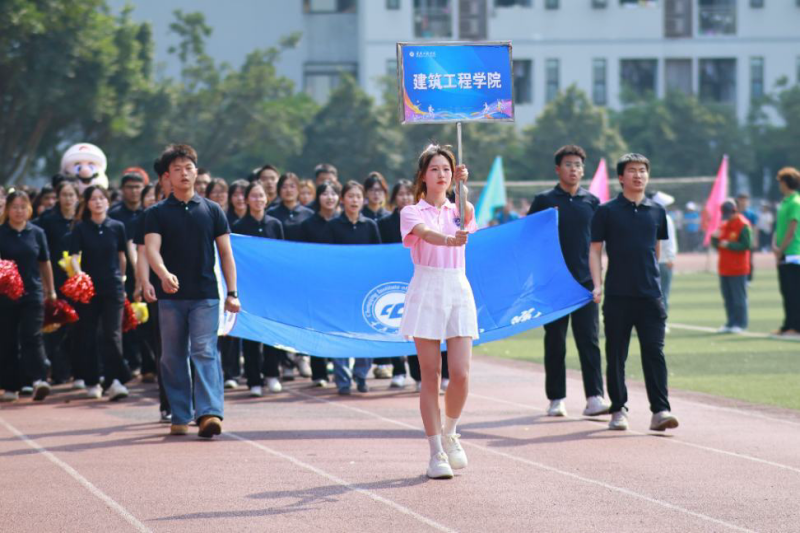 运动会会旗和校风、校训、学风方阵依次入场,一句句振奋人心的口号,展示出我校优良传统与重工学子团结自强、拼搏向上的精神风貌。随着彩旗与花环方阵的到来,各学院方阵各展神通,带来一场场视觉盛宴,他们将专业特色与体育艺术完美融合,更将传统文化的魅力展现得淋漓尽致。