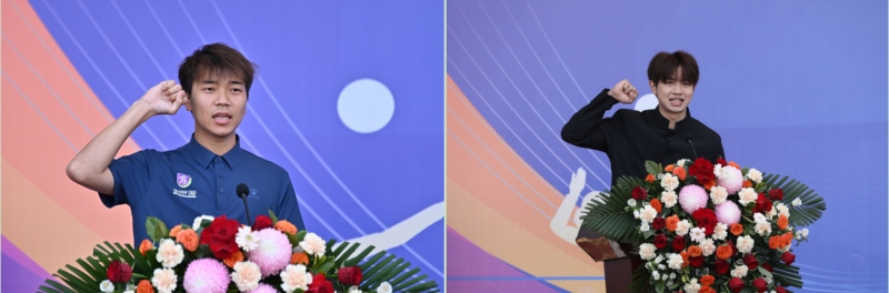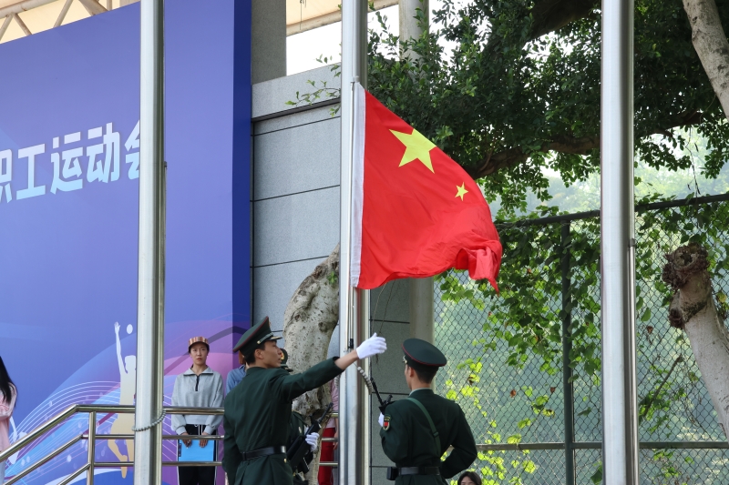 国旗护卫队高举五星红旗,脚步铿锵有力,全体肃立,升国旗,奏唱国歌,全体师生热情高涨。随后,运动员代表和裁判员代表分别进行了宣誓,向全体师生表明“公平、公正、公开”的运动态度,确保此次运动会圆满举行。