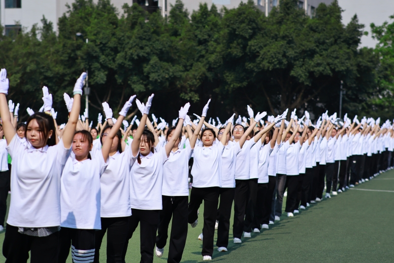 啦啦操之后,1200余名师生参加的广播体操团体比赛正式开始。他们动作整齐,神采飞扬,展现出我校全体师生阳光自信、朝气蓬勃的精神风貌。