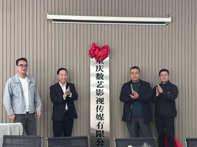 在随后进行的授揭牌仪式中,张业平为公司文化IP作品创作中心授牌并与杨飞、庄涛文、杨林林一道为新公司揭牌。随着红绸落下,重庆数艺影视传媒有限公司正式启航。