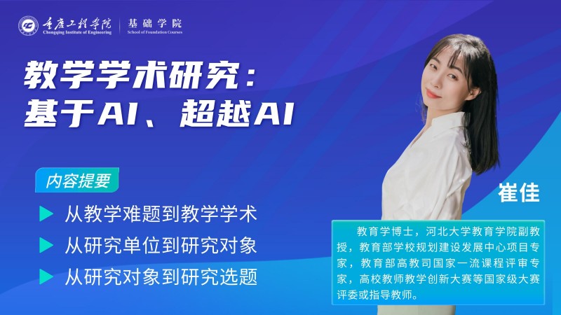 本网讯(文/图 基础学院 杨佳丽)为推进人工智能技术与教育研究的深度融合,助力教师教学研究能力提升,基础学院于4月16日通过线上平台两校区同步开展“教学学术研究:基于AI、超越AI”专题讲座。讲座特邀河北大学教育学院副教授、教育学博士崔佳主讲,学院全体教师参与学习。