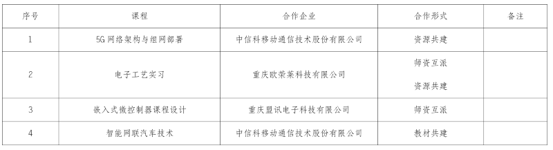 电子信息学院紧密对接新一代信息技术、5G 通信、人工智能等新一代信息技术产业核心领域需求,依托教师工作室群构建育人模式。该专业群联合重庆赛迈斯汽车科技有限公司、重庆鸿捷通信科技发展有限公司、重庆科技发展战略研究院有限责任公司等多家行业领军企业,共建“智能互联”“通信集成”“无人机”三大教师工作室。