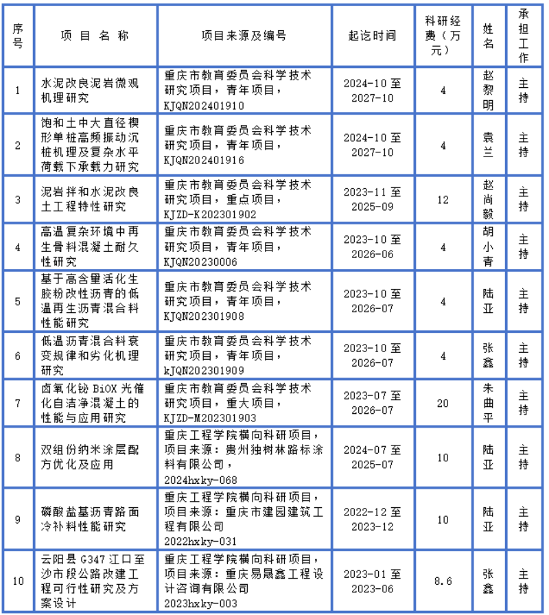 这些项目涵盖建筑材料的多个领域,如高性能混凝土、绿色建材、建筑废弃物资源化利用等,研究成果在行业内产生了广泛影响。