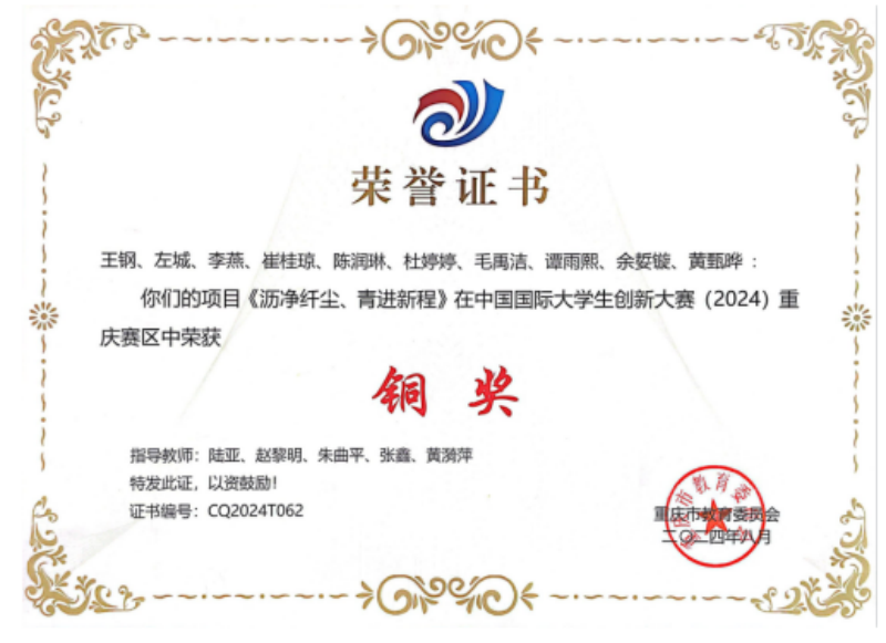 图11 中国国际大学生创新大赛铜奖荣誉证书