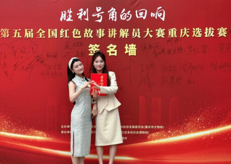 本次大赛由中共重庆市委宣传部、重庆市文化和旅游发展委员会联合主办,旨在通过红色故事讲解传承革命精神、培育社会主义核心价值观。大赛分专业讲解员和志愿讲解员两组,设置个人展示、自选讲解等环节,聚焦纪念中国人民抗日战争暨世界反法西斯战争胜利 80 周年,挖掘抗战故事中的民族精神。李盈颖在杨双溢老师的指导下,精心准备。比赛中紧扣主题,以充沛的情感和生动的表达,讲述了具有地域特色的红色故事,展现了扎实的讲解功底和对红色文化的深刻理解。