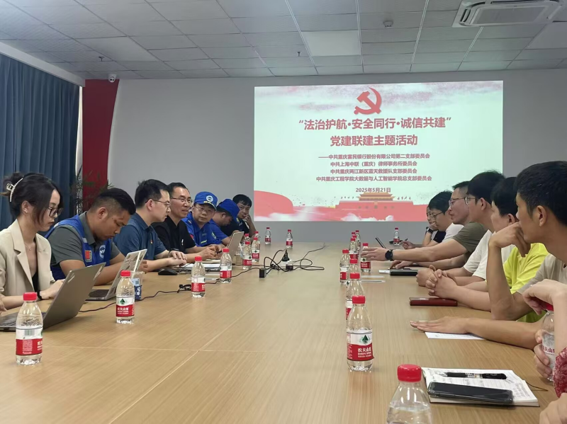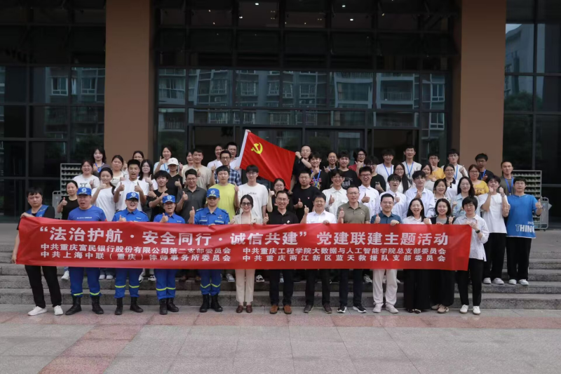 本网讯(文/图 大数据与人工智能学院 宁俊龙)为进一步丰富学院党建活动,提升活动质量,深入探索校企党建联建的活动模式。5月21日,大数据与人工智能学院党总支与重庆富民银行股份有限公司第二党支部、上海中联(重庆)律师事务所党支部、重庆两江新区蓝天救援队党支部在7205会议室共同开展了“法治护航、安全同行、诚信共建”校企党建联建主题活动,校企各级党组织共计50余人参加了活动。