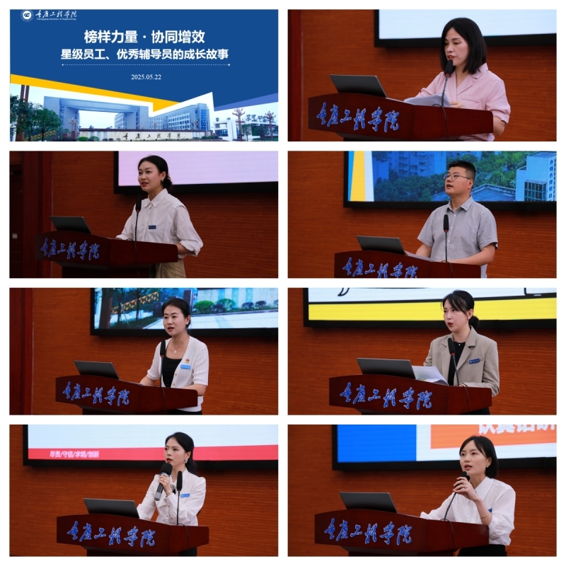 会议邀请了星级员工代表和优秀辅导员代表共7位老师依次分享职业成长故事。教务处老师张妍讲述了她勇做教学建设“摆渡人”的坚守,展现了以专业能力破解建设难题的担当精神;质管办老师张辉秀通过填报“一表通”平台的创新实践,分享了以数据治理优化管理流程、赋能学校发展的探索经验;党政办老师王欢阐述了从俄语笔译到行政文秘的跨界转型历程,揭示了她“严谨、细致、务实”的工作准则的养成路径;信息中心老师马竞奔通过师生服务中的具体案例,诠释了“技术服务有速度,师生关怀有温度”的岗位哲学;教务处老师刘皓月结合自身经历深度剖析了职业成长密码;双桥校区辅导员李小凤通过日常学生工作中的点滴故事,展现了她“微光成炬、润物无声”的师者风采;新媒体电商学院老师何荣双坦诚分享了从一线教师到管理岗位的角色转换挑战,彰显了她勇于突破舒适区的进取精神。7位老师的分享既有扎根岗位的实践厚度,又有提炼升华的思想深度,通过鲜活案例与真挚感悟,全景式呈现了不同岗位的价值追求与成长路径,为全体参会人员带来了一场兼具专业性与感染力的思想盛宴。