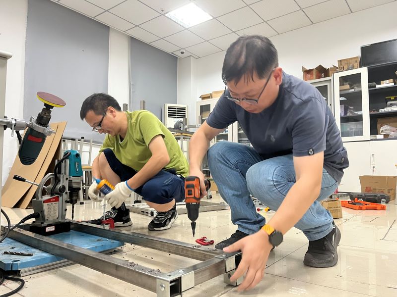 首战告捷,李洲荣更加坚定了“向企业要课题”的信心和决心。2025年,团队与某环保科技公司签订了横向合作协议,协助企业攻关沉池智能清扫机器人开发任务。传统储水罐的人工巡检需要工作人员穿厚重防水服下潜,稍有不慎就可能吞噬生命。李洲荣决心用代码打捞生命安全,带领智能制造学院的科研骨干组成“水下突击队”,多次下潜7米深的储水罐采集实验数据。盛夏之时,防水服中闷热无比,每次脱下都是一滩汗水;而到了数九寒冬,身上的汗水快速变冷,严寒刺骨。更不用说在水下工作时刻面临着生命安全,每次水下实验都是在生命线上跳舞,身心俱疲。即便这样,团队也从未放弃。“就在刚刚过去的五一节,我们团队又去水厂做了实验,新的实验数据将进一步帮助我们改进机器人的性能!”李洲荣自豪地说道,“我们的科研成果将帮助企业把单次作业成本从上千元降至两三百元。而且由于不用停机,水厂清扫效率将会得到质的提升,完全满足企业所需。”