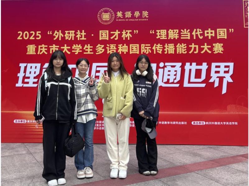 本网讯(文/图 基础学院 黄柳)10月25—26日,2025“外研社·国才杯”“理解当代中国”重庆市大学生多语种国际传播能力大赛在四川外国语大学圆满落幕。我校基础学院选派的11名参赛选手与来自市内27所高校的300余名本科生、硕士研究生同台竞技,最终全部荣获市级铜奖,充分展现了我校学子在外语应用与国际传播方面的综合素养。
