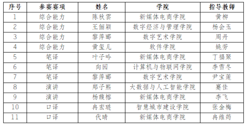 作为检验高校外语教学成果的平台,大赛英语组设置了综合能力、笔译、口译、演讲四大分赛项,全面考查选手的外语应用能力、跨文化沟通能力、思辨能力与创新能力。我校高度重视此次赛事,于10月初精心组织校赛选拔,通过层层考核评选出金、银、铜奖选手,并最终确定11名优秀代表参加市赛。比赛期间,由外语教研室丁福聚、李飞老师组成的指导团队全程陪同,为选手提供专业指导与后勤保障。