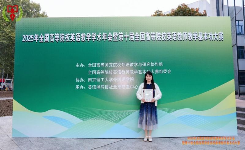 10月24日,黄柳在南京理工大学与其他31名说课组省级特等奖教师展开线下激烈角逐。比赛中,黄柳以《Pioneers of Fligh(t 飞行先驱)》为题进行全英说课展示,凭借清晰的教学思路、创新的教学设计和流畅的专家答辩,最终脱颖而出,斩获全国二等奖的优异成绩,展现了我校教师良好的国际化教学能力。