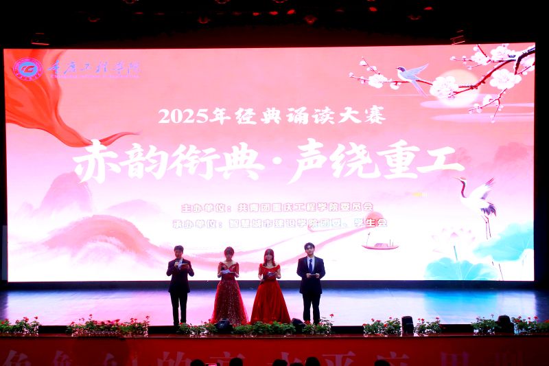 本网讯(文/校团委 张俊 图/大学生记者团 宋衍琪)为传承中华优秀传统文化与红色革命精神,筑牢文化自信根基,提升新时代大学生的人文素养与家国情怀,11月5日晚,由共青团重庆工程学院委员会主办、智慧城市建设学院团委承办的重庆工程学院第十一届文化艺术节经典诵读比赛在南泉校区学术报告厅举办。党委宣传部、学生处、图书馆、校团委等部门负责人及各二级学院党总支书记,6名教师评委和20名大众评审团以及现场1000余名同学共同参与。