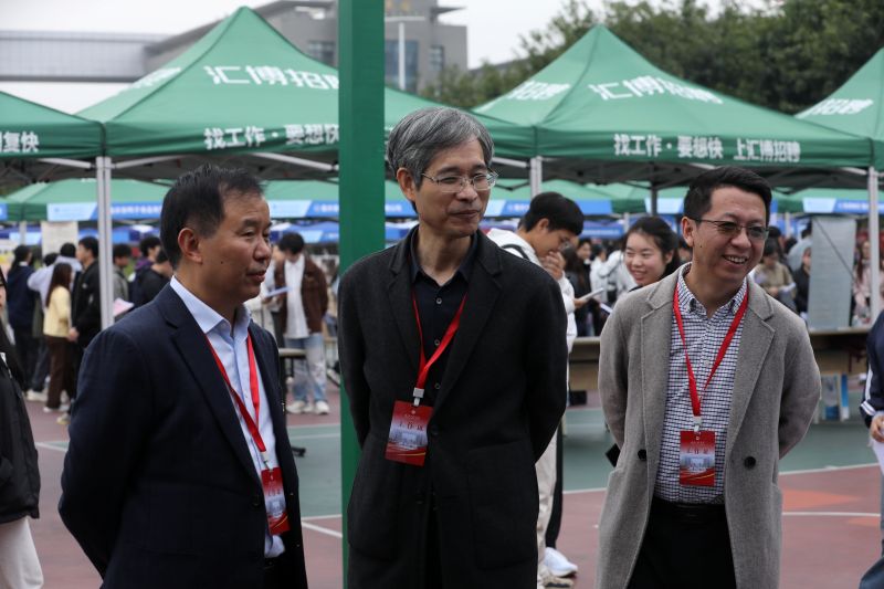 校长孙芳城,党委副书记、双桥校区管委会主任唐小勇,副校长王建东,校长助理邹均等领导亲临现场,与企业代表深入交流,学生处、招就处等相关职能部门负责人、各专业二级学院负责人及辅导员等也在现场与企业沟通,指导毕业生求职。大足区人力资源和社会保障局党委委员、副局长周前云等政府代表莅临指导,体现了政校企三方在促进就业工作中的紧密合作与资源整合。
