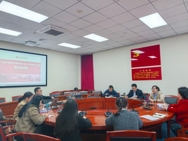 本网讯(文/图 马克思主义学院 周建武)为加强思政课教学改革,提高思政课的教学质量,增强学生的获得感。11月10日下午,学校党委书记、马克思主义学院第一书记陈长虹深入马克思主义学院参加“习近平新时代中国特色社会主义思想概论”课程集体备课会,教研室全体教师参会。会议由学院党总支书记、副院长王巧玲主持。