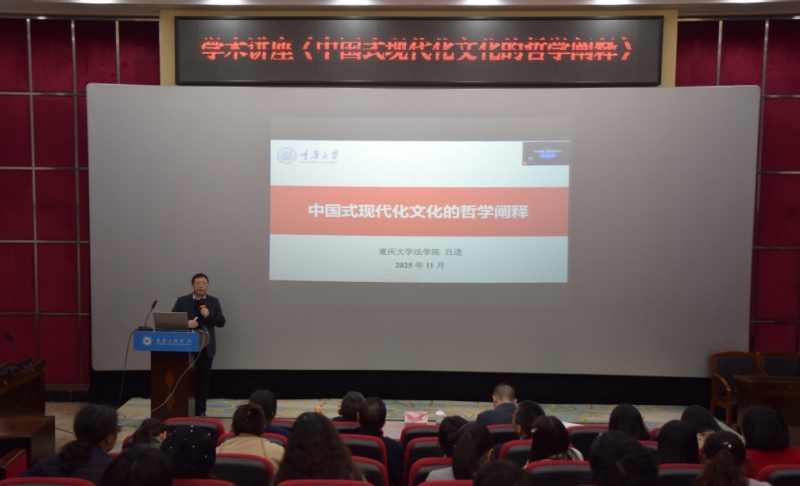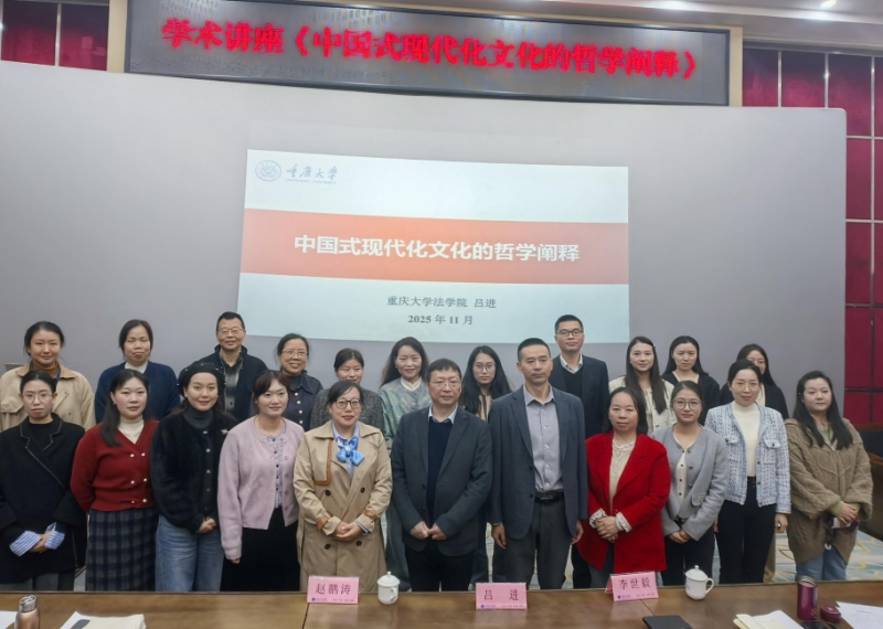 本网讯(文/马克思主义学院 刘爽、科技处李世毅图/大学生记者团)为营造浓厚学术氛围,搭建青年教师交流平台,分享科研实操经验,学校于11月12日下午,在办公楼报告厅开展“中国式现代化文化的哲学阐释”学术讲座。本次讲座特别邀请重庆大学法学院教授、博士生导师、法学博士、哲学博士、厦门大学哲学流动站出站博士后、美国哥伦比亚大学访问学者吕进教授主讲,科技处、宣传部负责人,马克思主义学院全体教师、以及其他感兴趣的师生共计100余人参加。讲座由马克思主义学院副院长王巧玲主持。