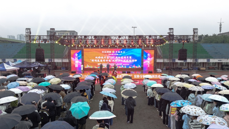 本网讯(文/双桥校区管委会 杨世玲 图/双桥校区新媒体中心)为深化消防安全教育,提升师生应急处置能力,11月14日上午,双桥校区组织开展消防应急疏散演练暨“119”消防宣传月进校园活动。经开区消防救援大队副大队长刘浩,学校党委副书记、双桥校区管委会主任唐小勇,校长助理邹均以及各乡镇街道、相关部门代表及师生1000余人参与,通过“实战演练+互动体验”模式,为校园安全注入“防护力”。