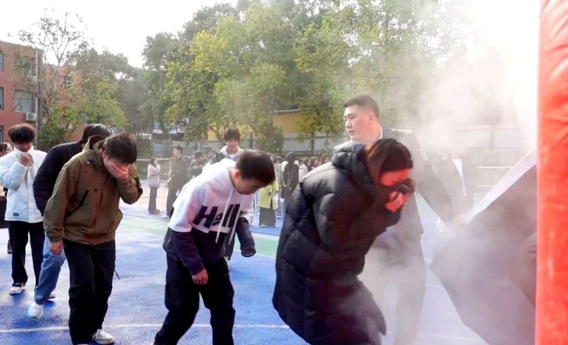 “弯腰!捂鼻!跟紧荧光箭头!”专业教官与志愿者在通道内高声引导。师生员工们用衣物紧捂口鼻,以近乎匍匐的姿势摸索前行,在黑暗中凭借触觉与听觉寻找出口。“里面又闷又呛,心跳快得像要蹦出来!”参与演练的学生杨棋回忆道,“我被障碍物绊倒时,志愿者立刻扶起我,那一刻真正体会到‘有序撤离’的重要性。”