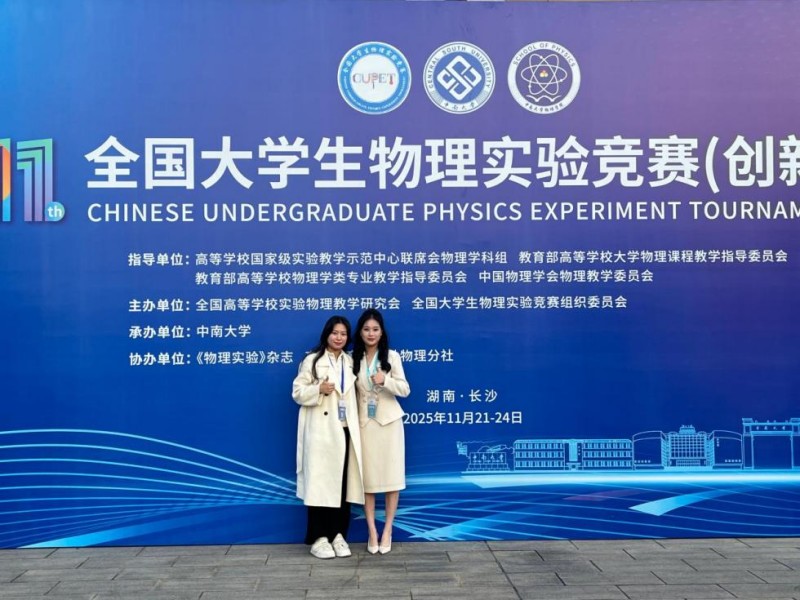 本网讯(文/图 基础学院 杨佳丽)近日,第十一届全国大学生物理实验竞赛(创新)决赛在湖南长沙圆满落幕。我校学子与浙江大学、中国科学技术大学、上海交通大学、哈尔滨工业大学等全国顶尖高校同台竞技,凭借扎实的专业功底、创新的实验设计和稳定的现场发挥脱颖而出,最终斩获一等奖1 项、二等奖2 项、三等奖3项,创下学校参赛以来的最佳战绩。