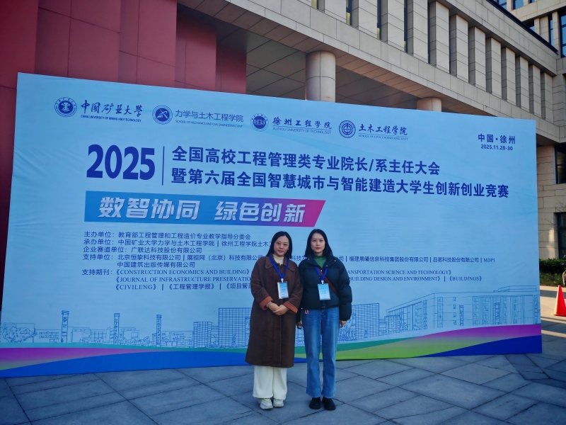 本网讯(文/图 智慧城市建设学院 曾赟)11月28日-30日,全国高校工程管理类专业院长、系主任大会在江苏徐州中国矿业大学召开,我校智慧城市建设学院工程管理系主任安雪玮、副主任曾赟应邀参会,深入学习工程管理系行业前沿动态,为学校相关专业转型与高质量发展积累关键经验。