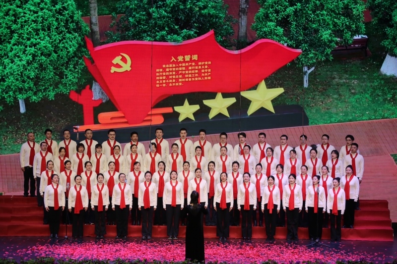 (图8:软件学院、数字孪生产业学院参赛联队演唱《香樟情怀》《铭记》,指挥:刘安琪)