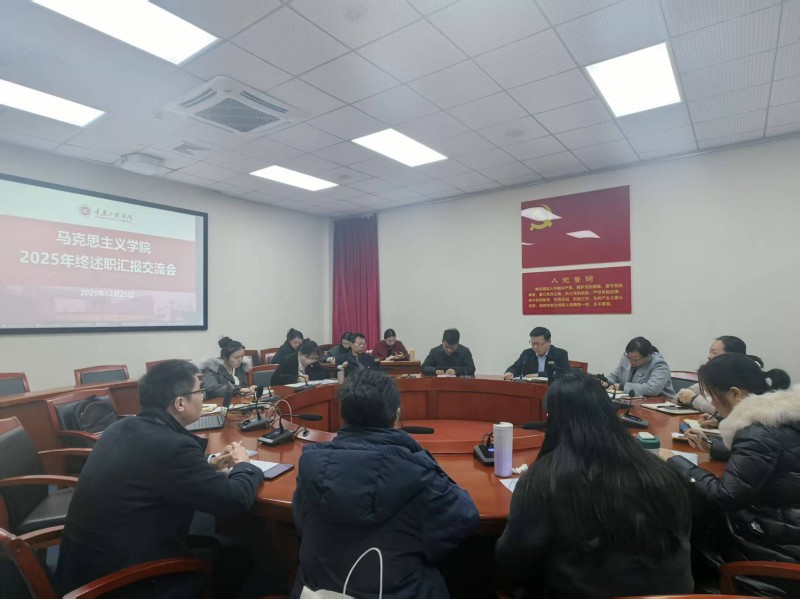 本网讯(文/图 马克思主义学院 刘爽)12月29日,马克思主义学院南泉校区思政课专任教师2025年度述职汇报交流会在南泉校区第三会议室开展。党委书记陈长虹出席,学院全体教师参加会议。会议由马克思主义学院党总支书记、院长王巧玲主持。