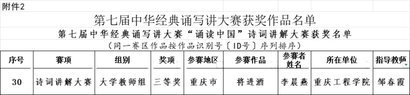 本网讯(文/图 大学生素质教育中心)近日,教育部、国家语委主办的第七届中华经典诵写讲大赛获奖名单在官方网站公布,我校数字孪生产业学院辅导员李晨燕老师凭借讲解作品《将进酒》,在“诗教中国”诗词讲解大赛中荣获国家级三等奖。