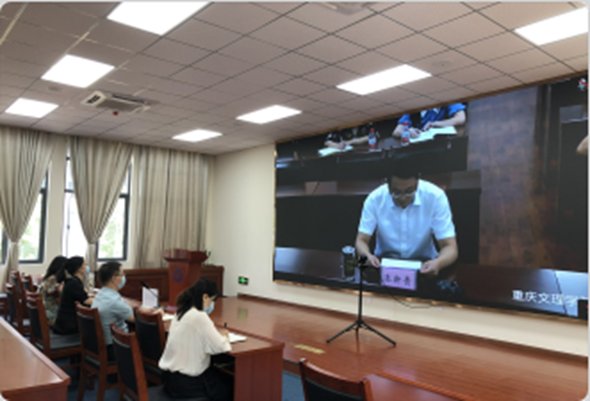 2022年9月13日下午,我校在行政楼第四会议室集中组织参加2022年度重庆市高校学籍学历注册和管理工作视频会议,会议由市教委招考处窦晓明处长主持,我校教务处副处长陈艳莲及相关工作人员参加了此次视频会议。