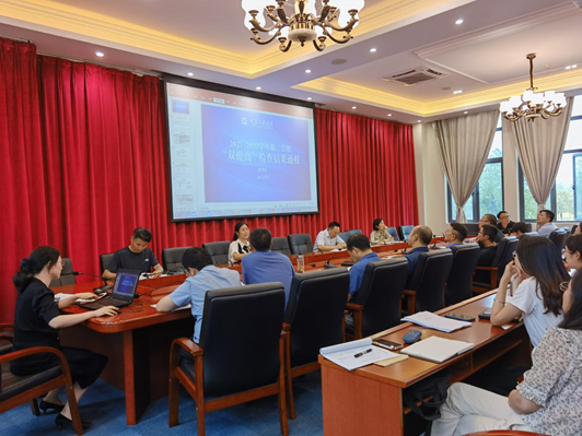会议开始,教务处副处长陈艳莲从专业建设及人才培养方案、教学大纲、教材、课堂教学、试卷、毕业设计(论文)、毕业实习、实验室、实习基地九个方面通报了2021-2022学年第二学期“双提高”的检查结果。