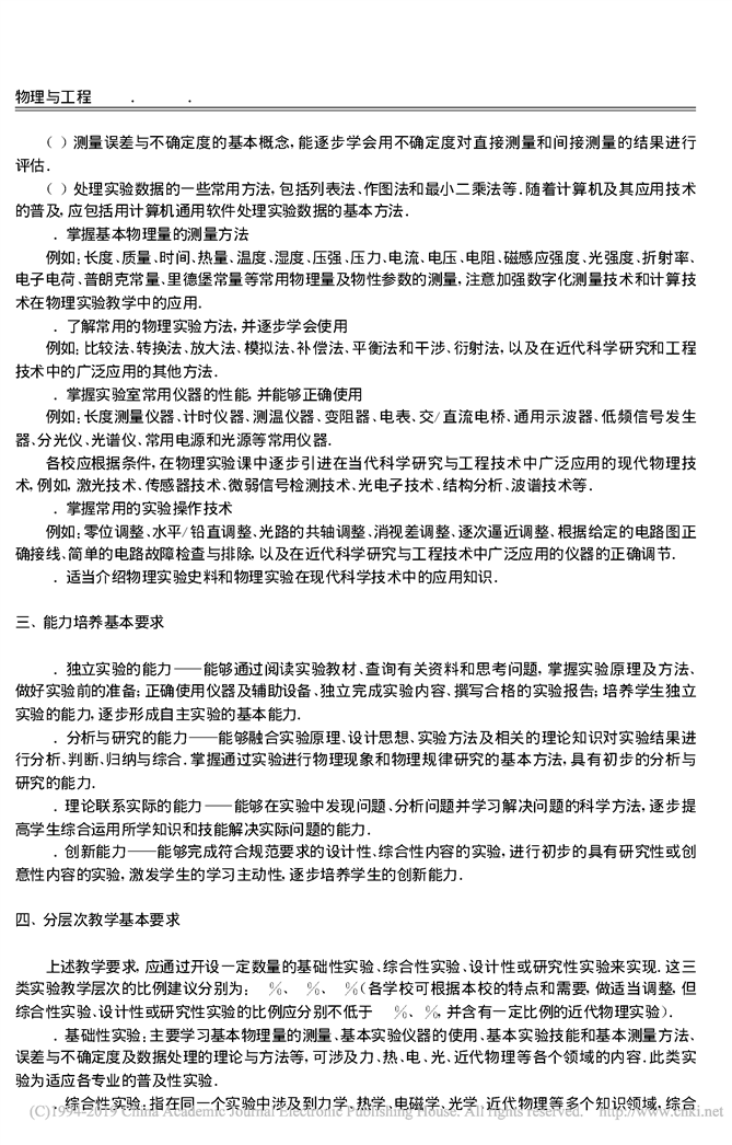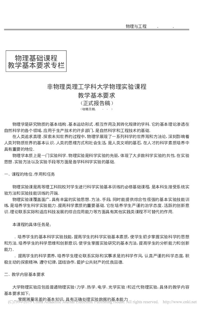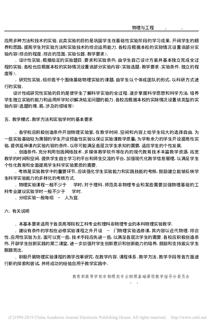 非物理类理工学科大学物理实验课程教学基本要求