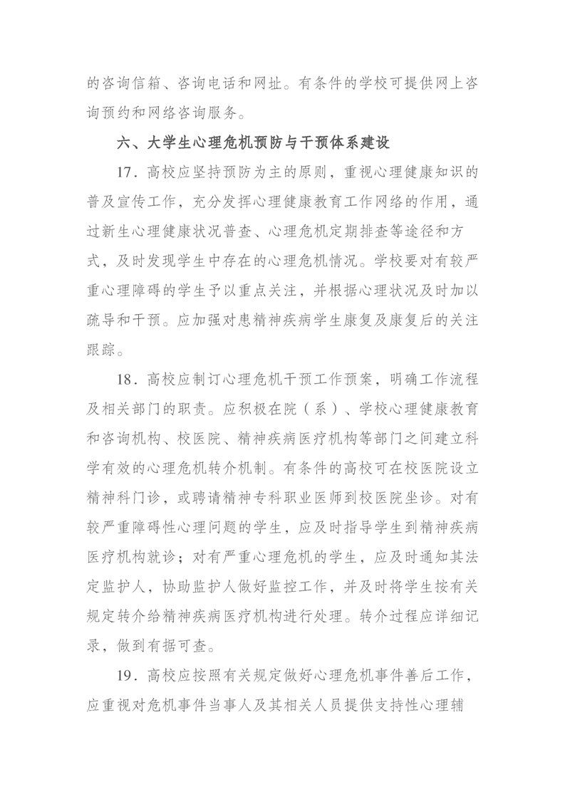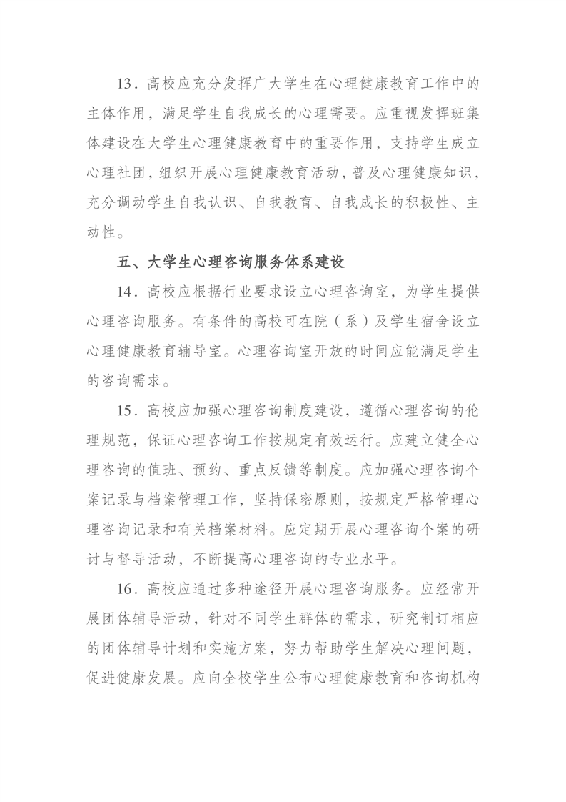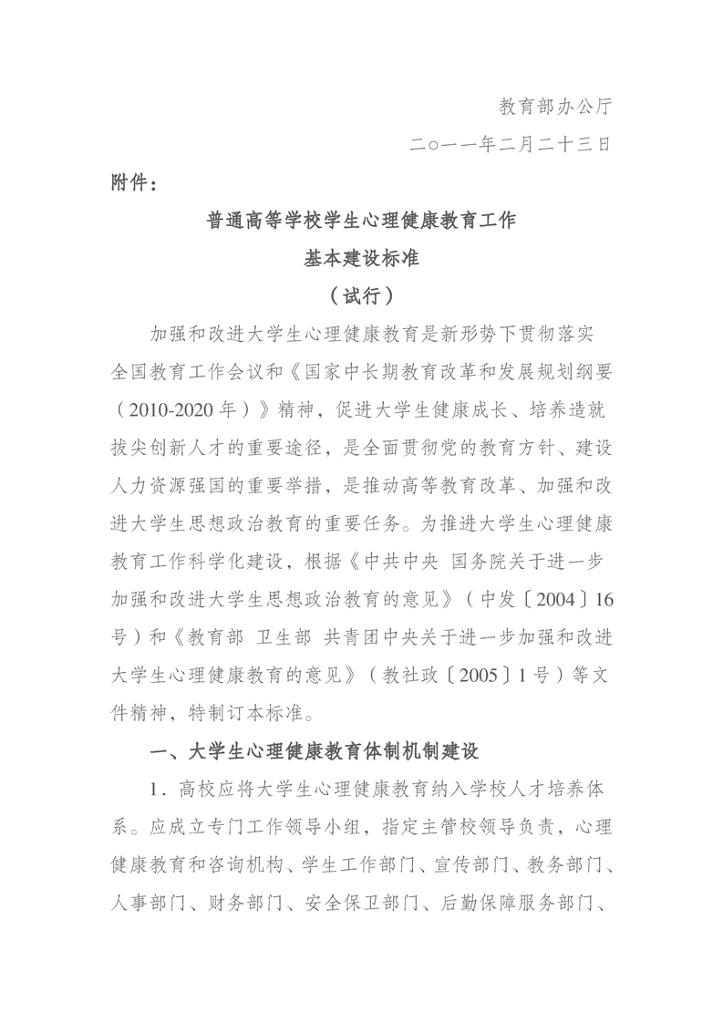 教育部办公厅关于印发《普通高等学校学生心理健康教育工作基本建设标准(试行)》的通知