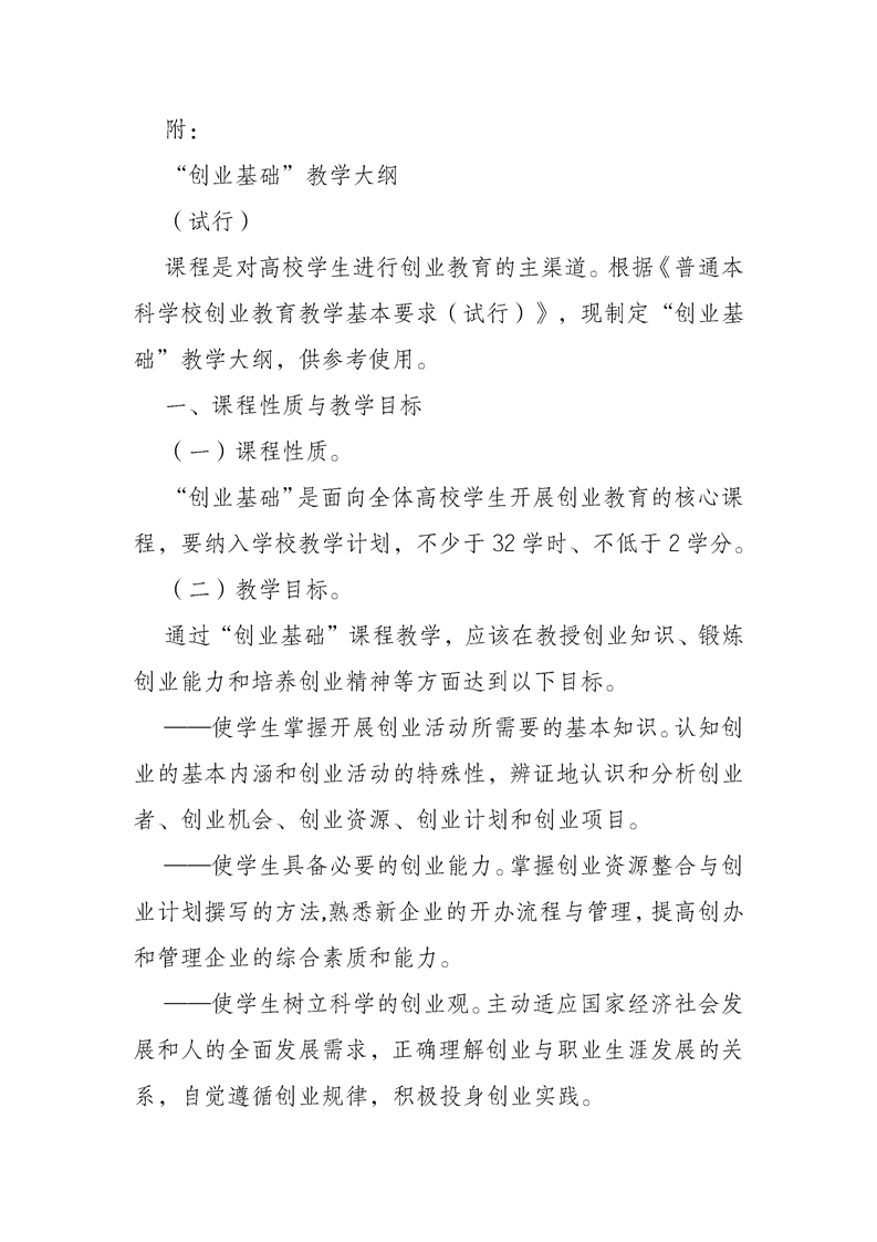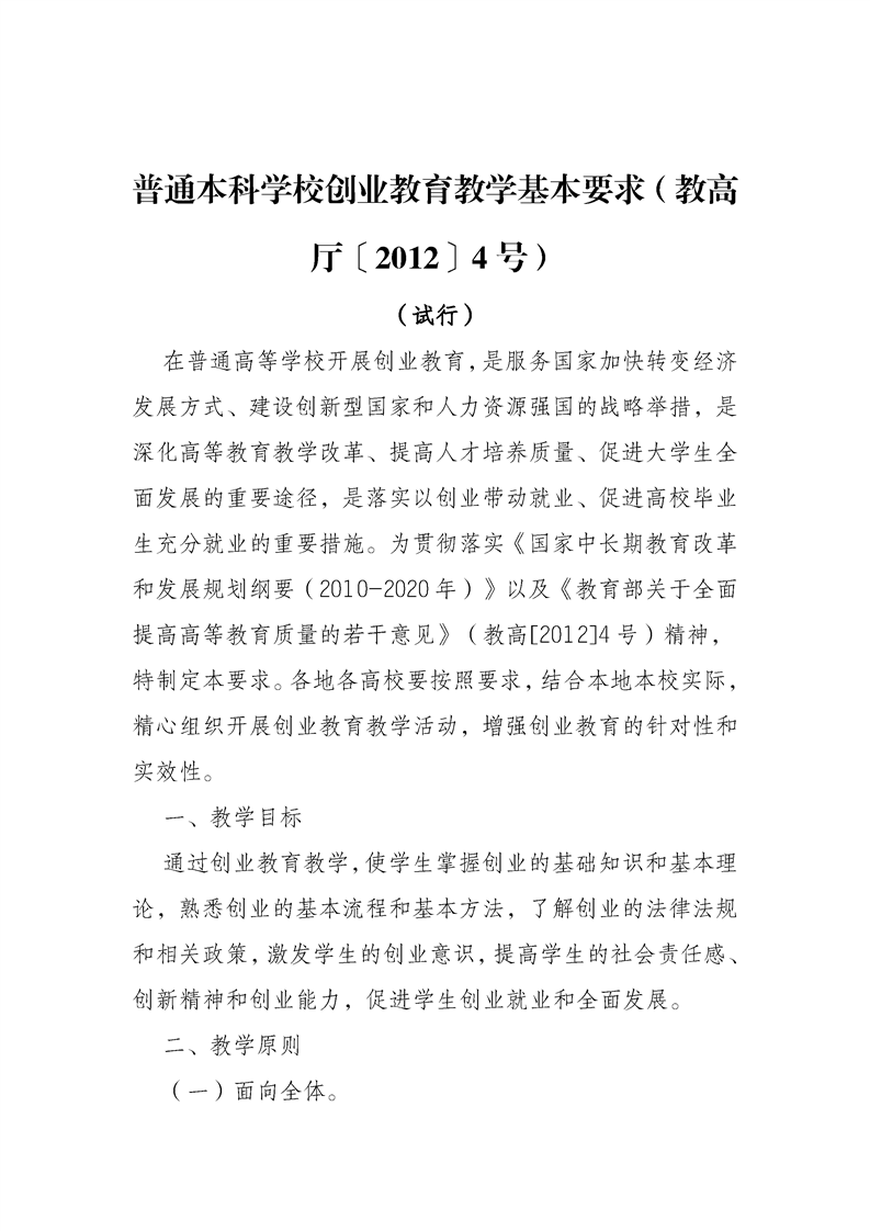 普通本科学校创业教育教学基本要求