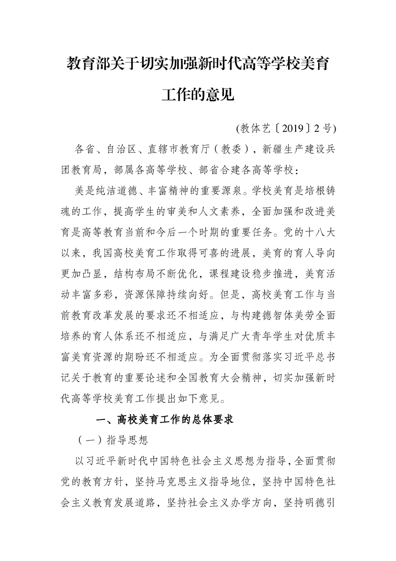 教育部关于切实加强新时代高等学校美育工作的意见