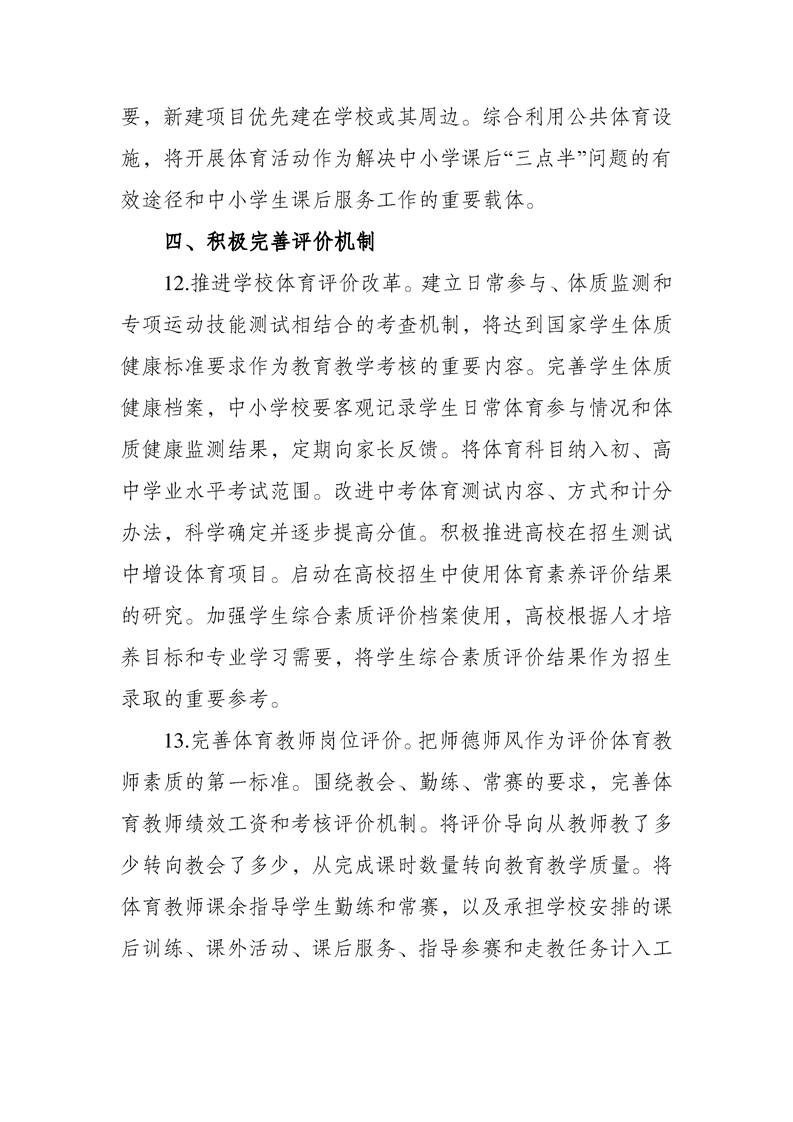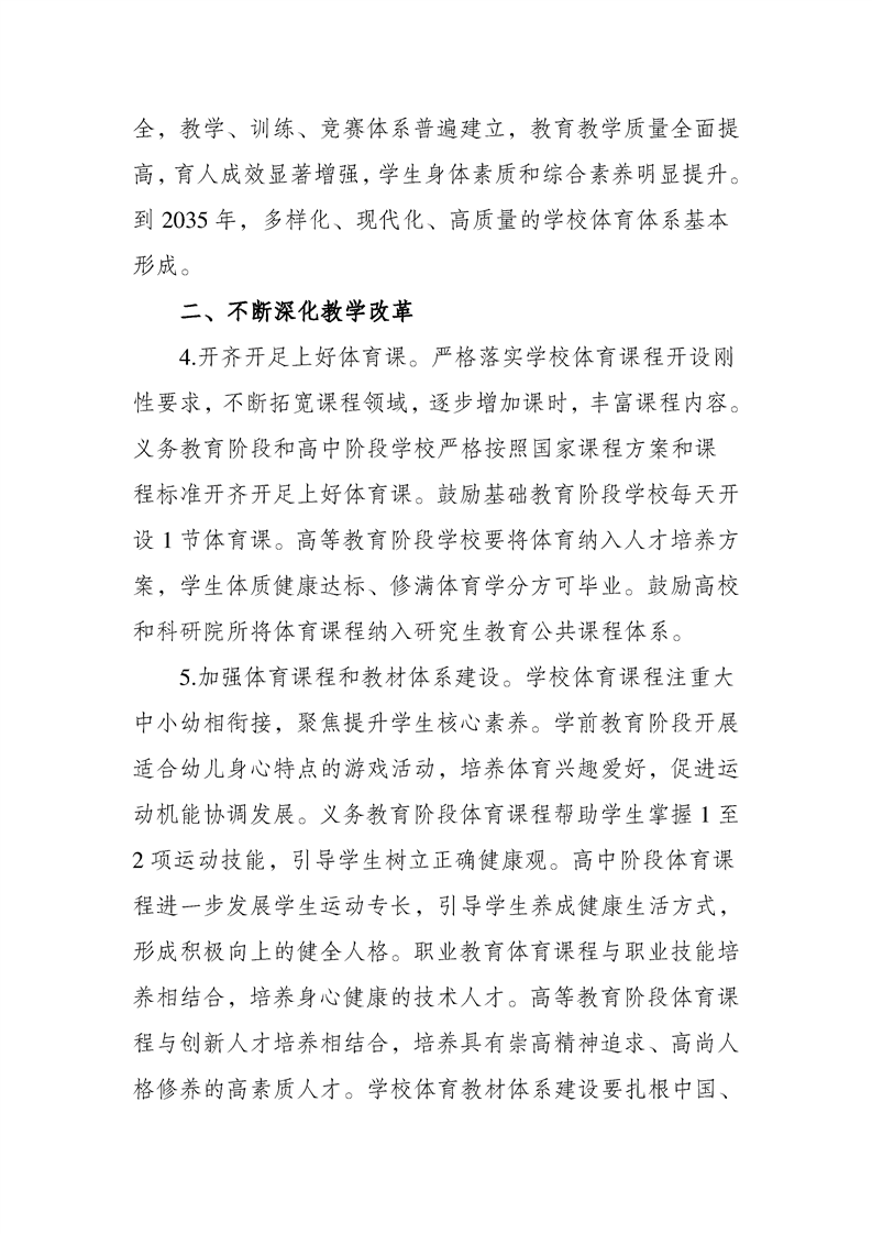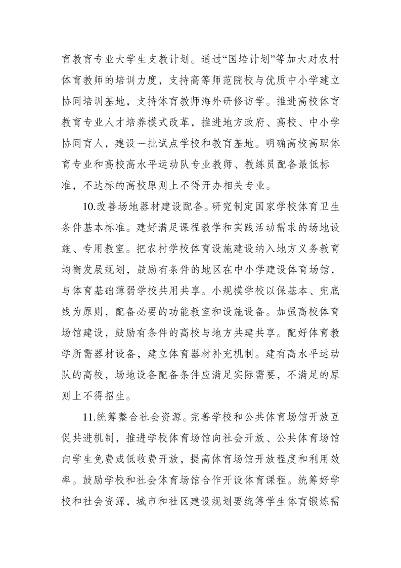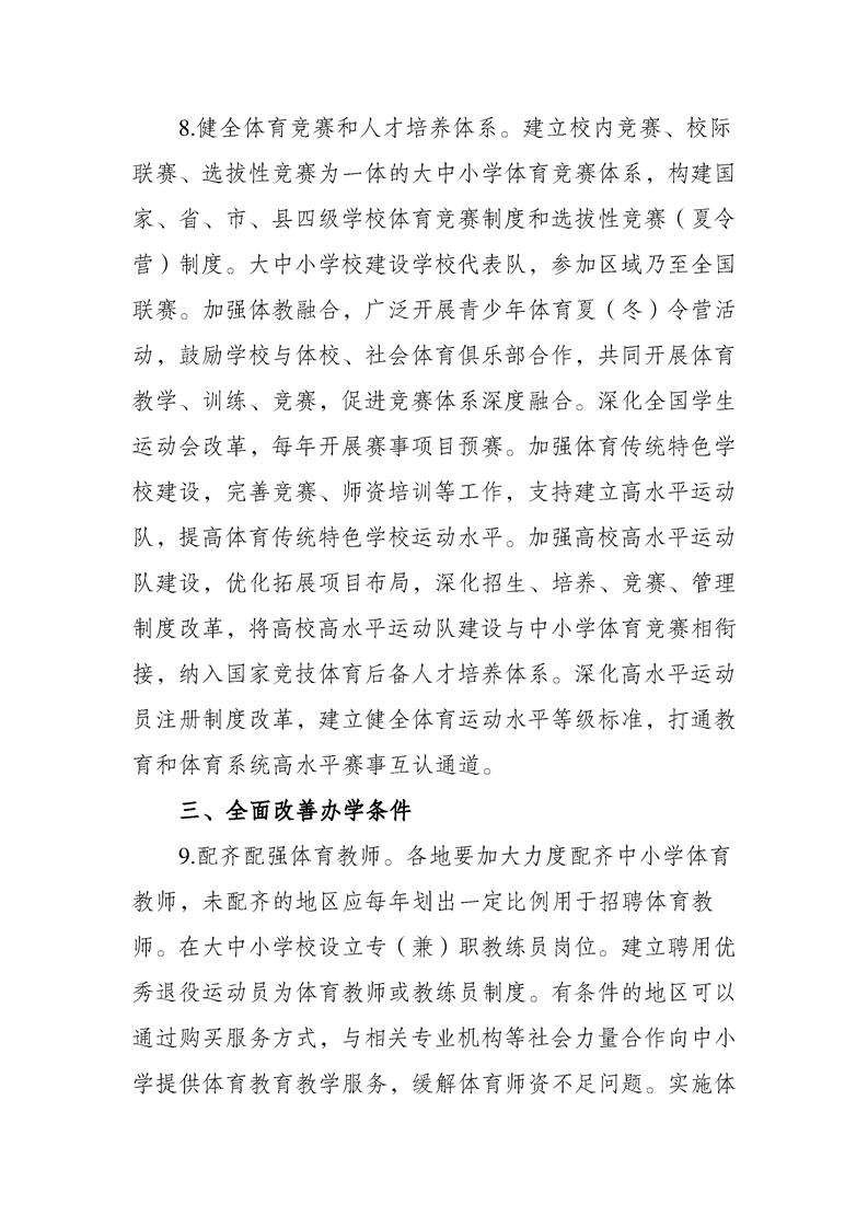 关于全面加强和改进新时代学校体育工作的意见