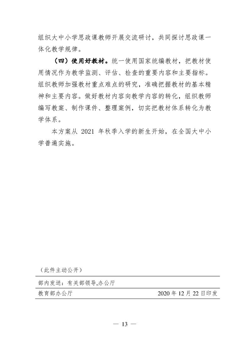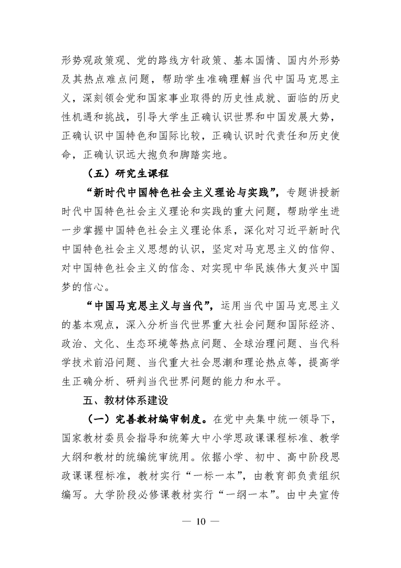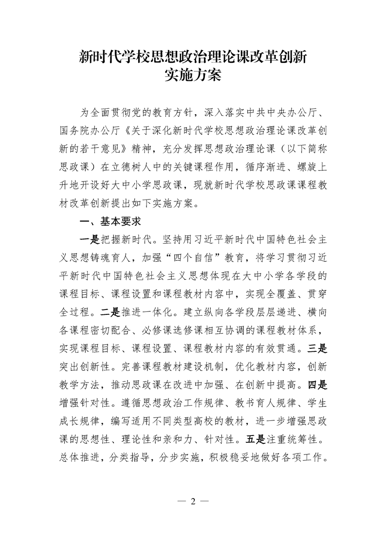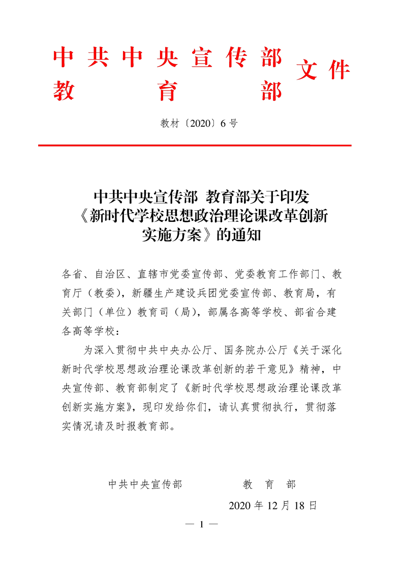 中宣部 教育部新时代学校思想政治课改革创新实施方案