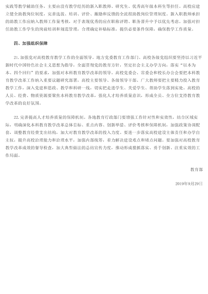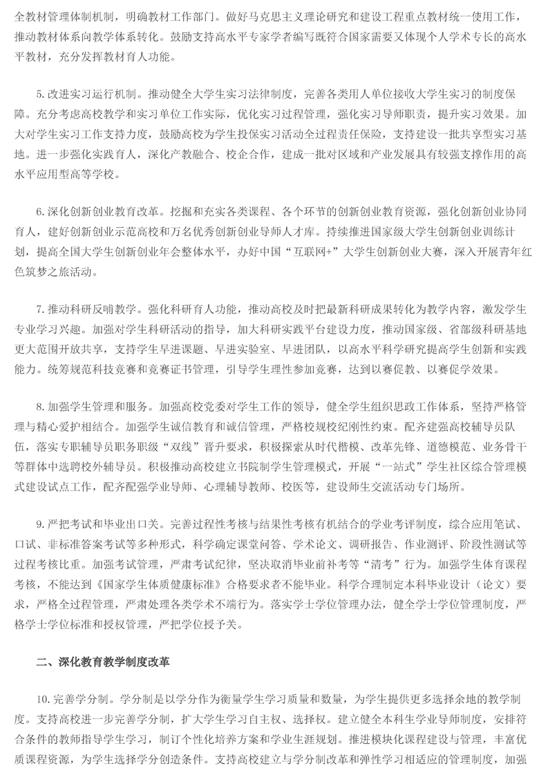 教育部关于深化本科教育教学改革全面提高人才培养质量的意见 - 来自中华人民共和国教育部政府门户网站