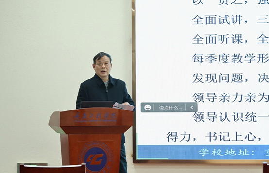 3月1日下午,学校在行政楼第四会议室召开2022年度教学工作总结暨2023年度教学重点工作部署大会。会议由党委书记、督导专员谭明术主持,学生处、招就处、质管办、科技处、教师发展中心、信息中心主要负责人;各学院院长、分管教学副院长、教务科长;教务处、质管办、评建办全体人员;学校教学督导团全体成员参加了会议。