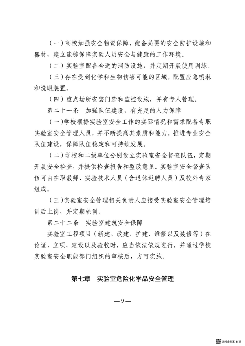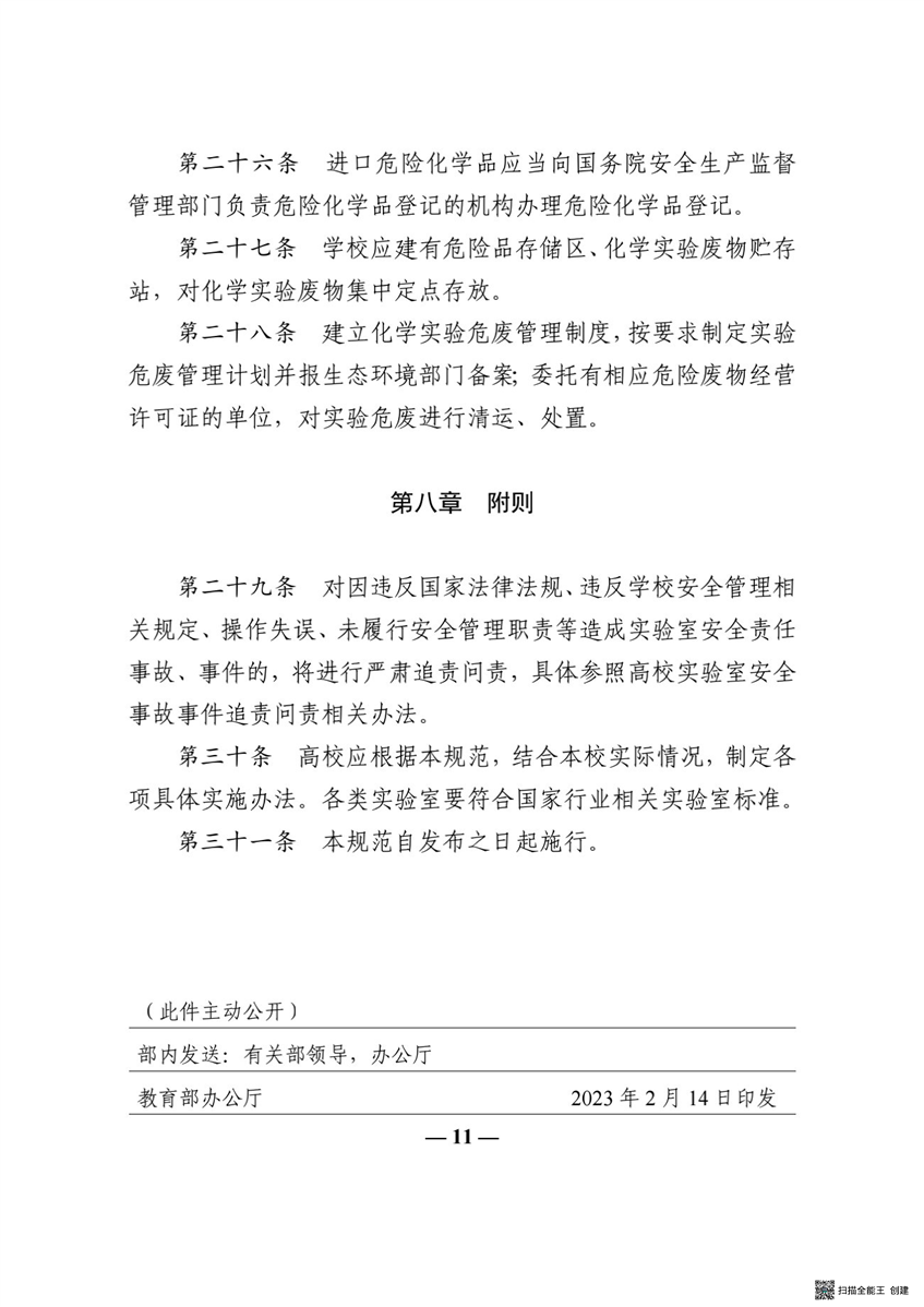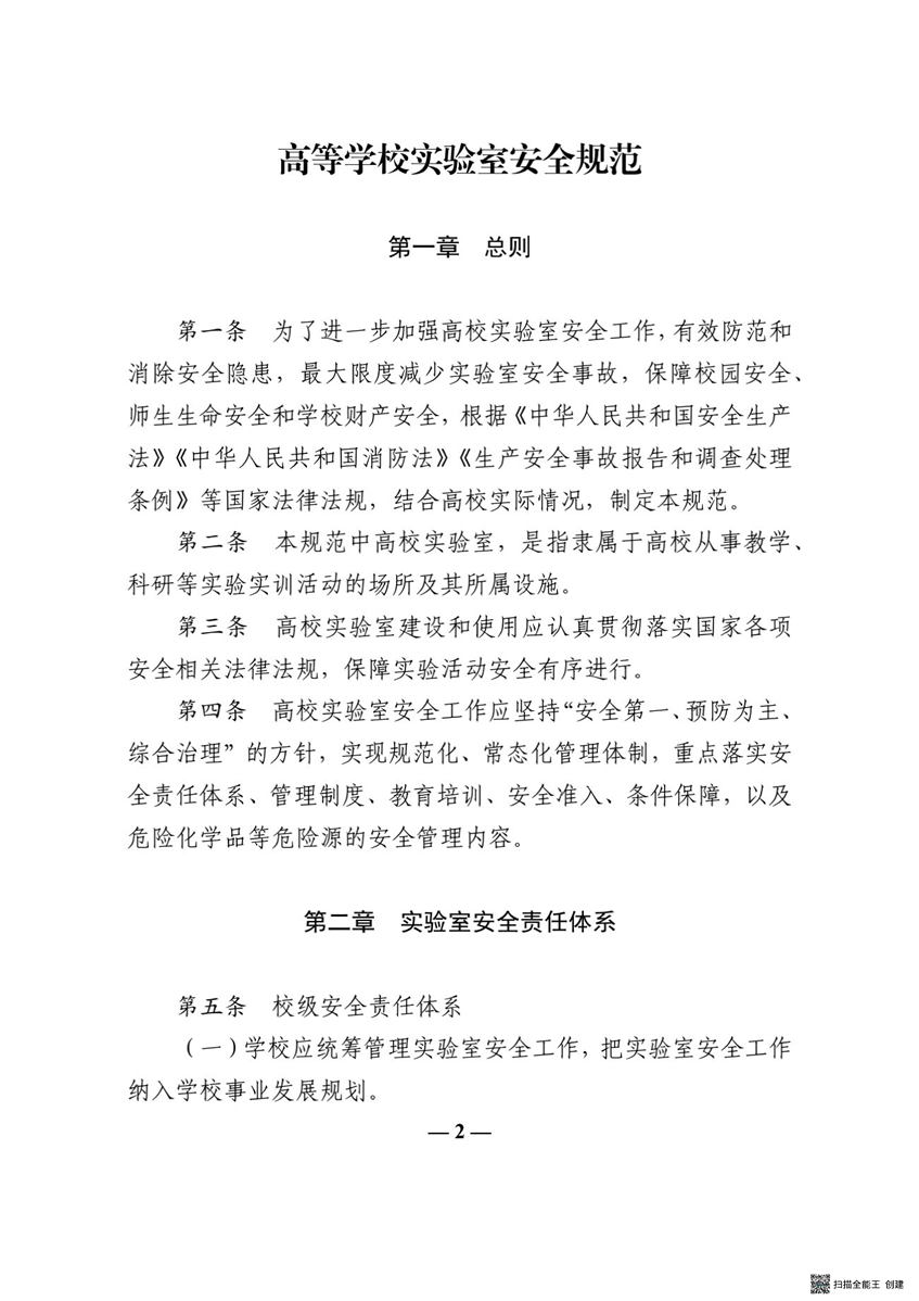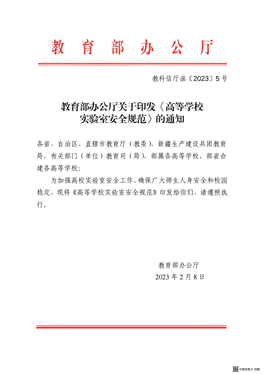 教育部办公厅关于印发高等学校实验室安全规范的通知
