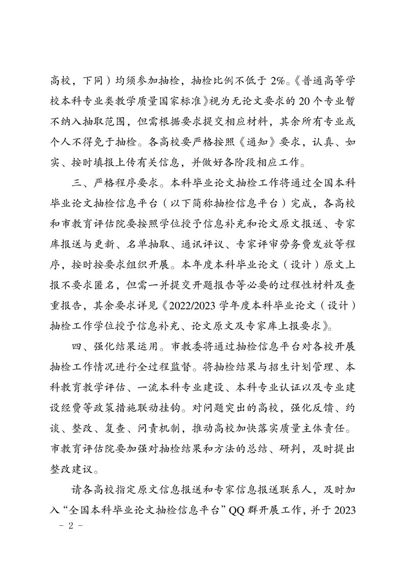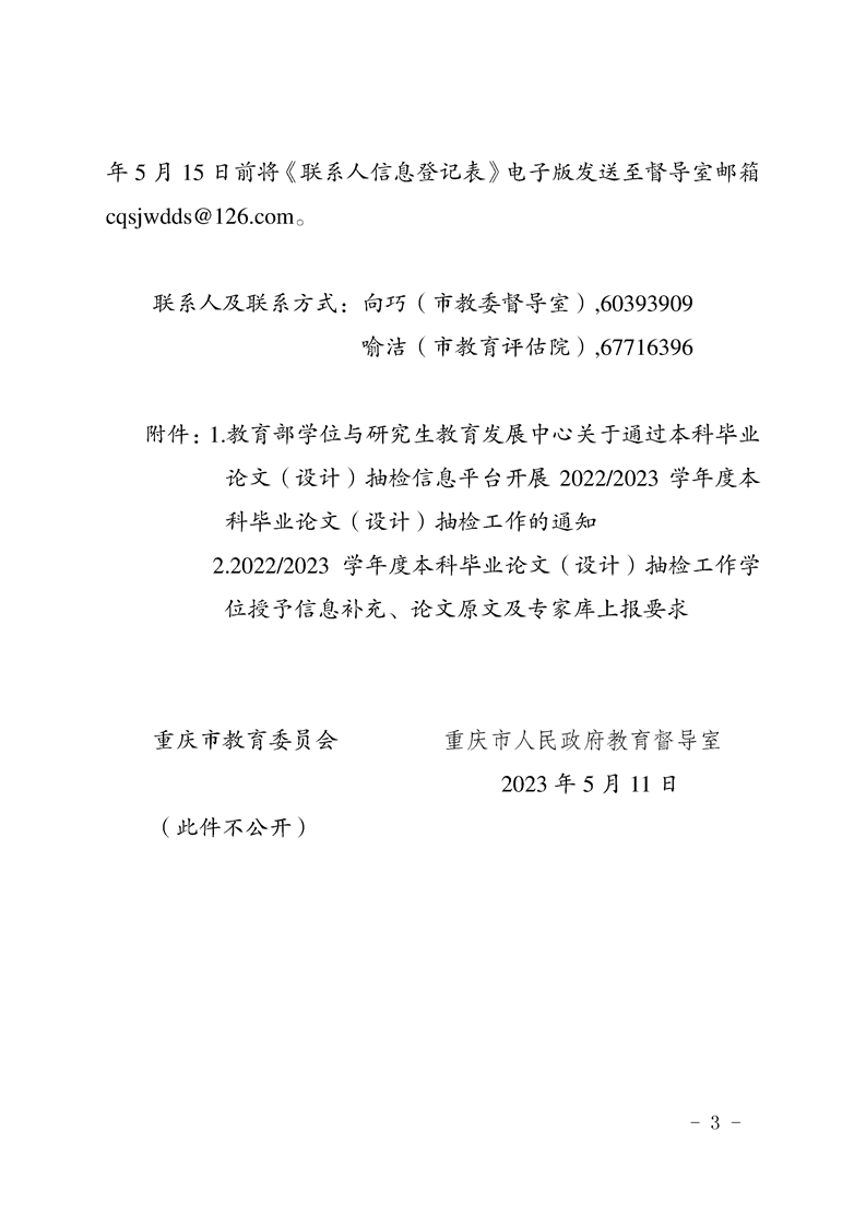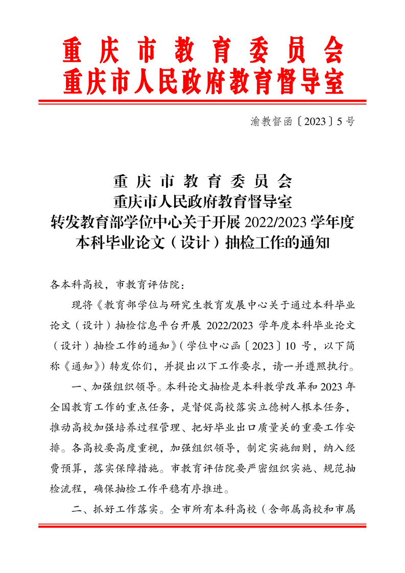 重庆市教育委员会重庆市人民政府教育督导室转发教育部学位中心关于开展20222023学年度本科毕业论文(设计)抽检工作的通知