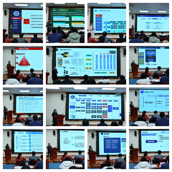 说课环节中,14位参赛教师们各展所长,依次展示了10分钟的说课,主要围绕课程定位与教学目标、教材选择、教学资源、学情分析、教学方法、教学过程、考核评价、特色创新与教学效果等方面进行了说课。并在教学过程环节重点以一次案例教学或项目制教学为例进行说课。14位教师在说课中贯彻OBE教育理念,高度凝练各具特色的教学模式、教学方法,尽展说课风采。评委们则全神贯注,聚精会神地聆听每位参赛者的精彩说课,并依据评分标准,对参赛教师的说课内容进行了评估和打分。