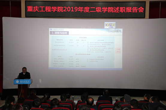 1月2日早上9:30,报告会在校歌香樟情怀中正式开始,各职能部门结合年初制定的目标任务,聚焦学生与教师服务,依次报告了2019年基本情况与取得的突破,分享了工作开展的思路与方法,并联系合格评估,结合当前存在的问题提出了未来工作的思考和规划。1月3日早上,各二级学院结合本单位上年度目标任务,就党建工作、专业建设、课程建设、科研建设、师资队伍、就业管理、校企合作等各方面做了汇报,展示了人才培养、科学研究、社会服务等方面的举措和成效。