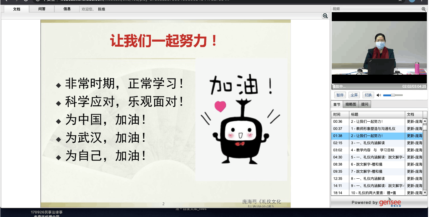 2020年3月2日,人事处(教师发展中心)组织教师和职能员工集体学习“大学教师形象塑造与沟通礼仪”。该直播课程由北京理工大学庞海芍教授讲授。庞教授除了从礼仪内涵解读到礼仪要素的理论分析,还从仪容、表情、站姿、坐姿、蹲姿,不同场合的穿着、谈吐、沟通进行深入浅出的讲授。其中很多观点老师们都觉得受益匪浅,特别是“礼是内存修养,仪是外在形式”;“君子九容”值得个人长期修炼;工作中要学会如何自我调节情绪;女性应当是知性与优雅;沟通是门艺术;如何注意“了解人、理解人、尊重人”;学会倾听等观点,引发老师们的思考和讨论。