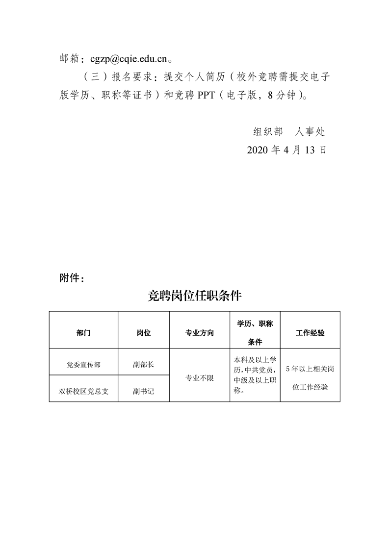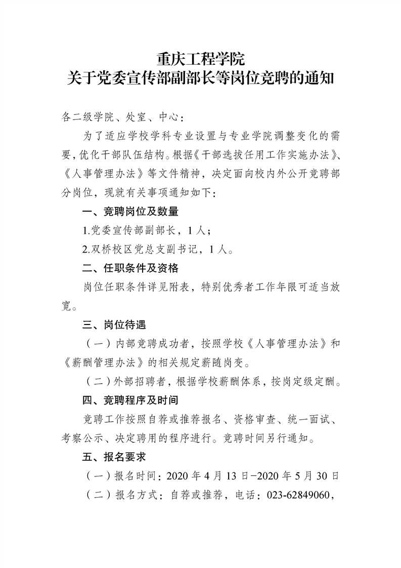 关于党委宣传部副部长等岗位竞聘的通知