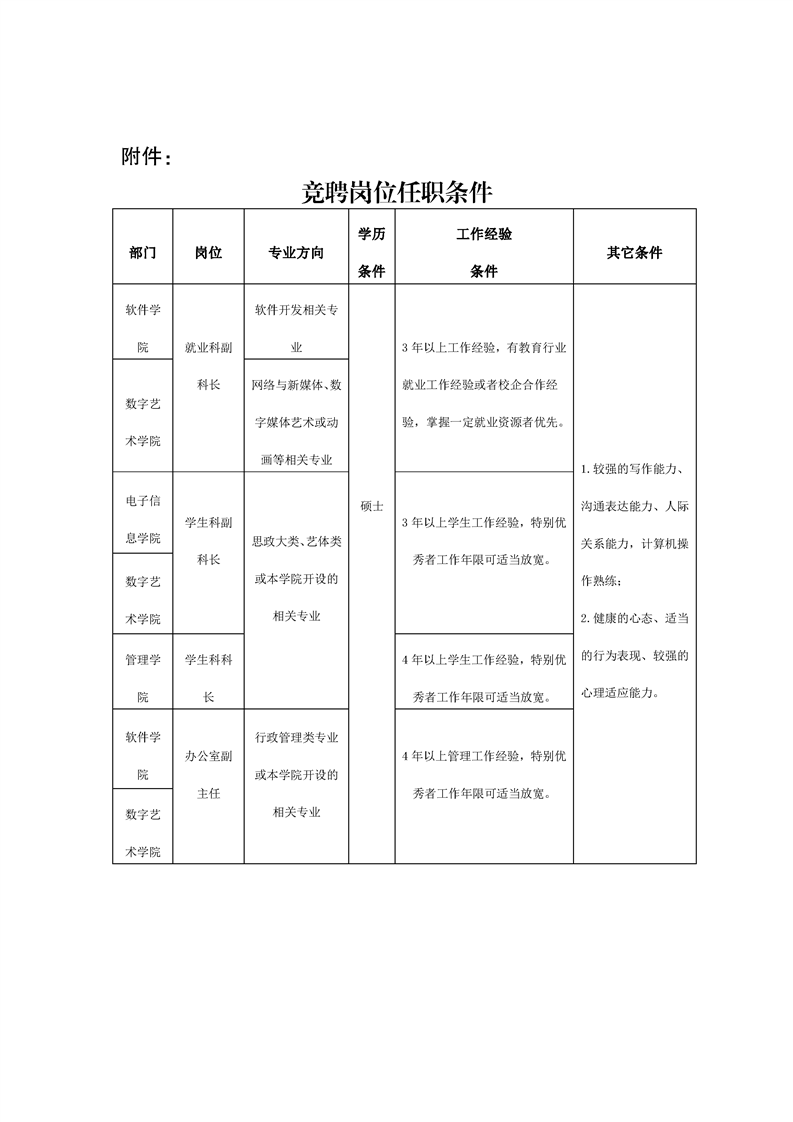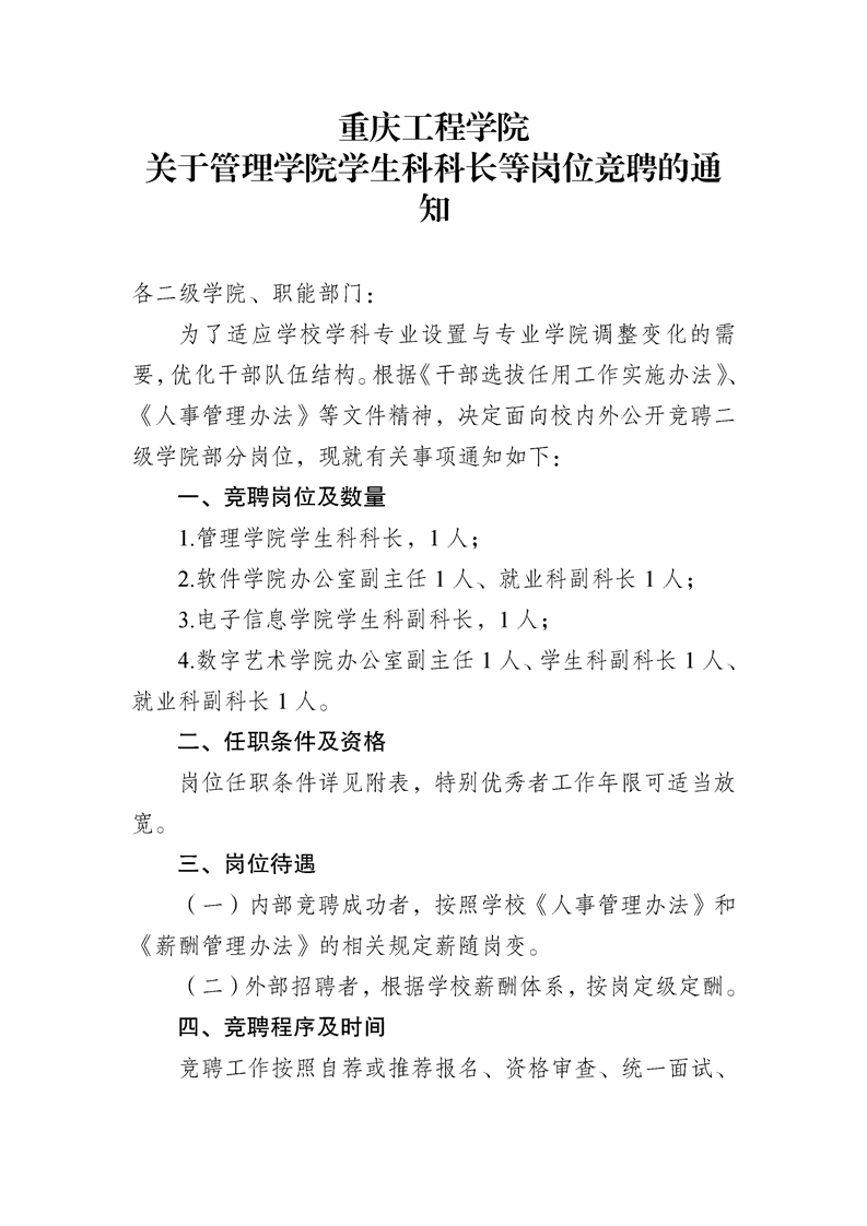 关于管理学院学生科科长等岗位竞聘的通知