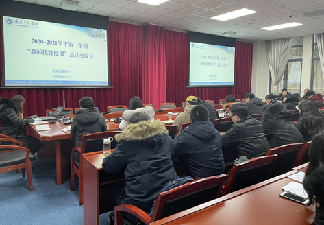 2021年1月8日下午2点,教师发展中心在学校第一会议室组织召开本学期教师“挂牌授课”总结交流会。副校长王琼花、校长助理杨桂、教发中心副主任陈可、本学期挂牌教授教师、下学期拟挂牌授课教师、各学院部分系主任参加了本次会议,会议由教发中心张晓颖老师主持。