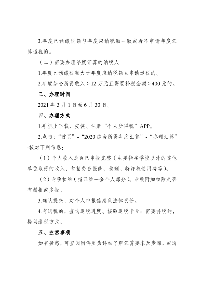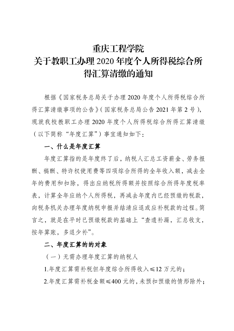 关于教职工办理2020年度个人所得税综合所得汇算清缴的通知