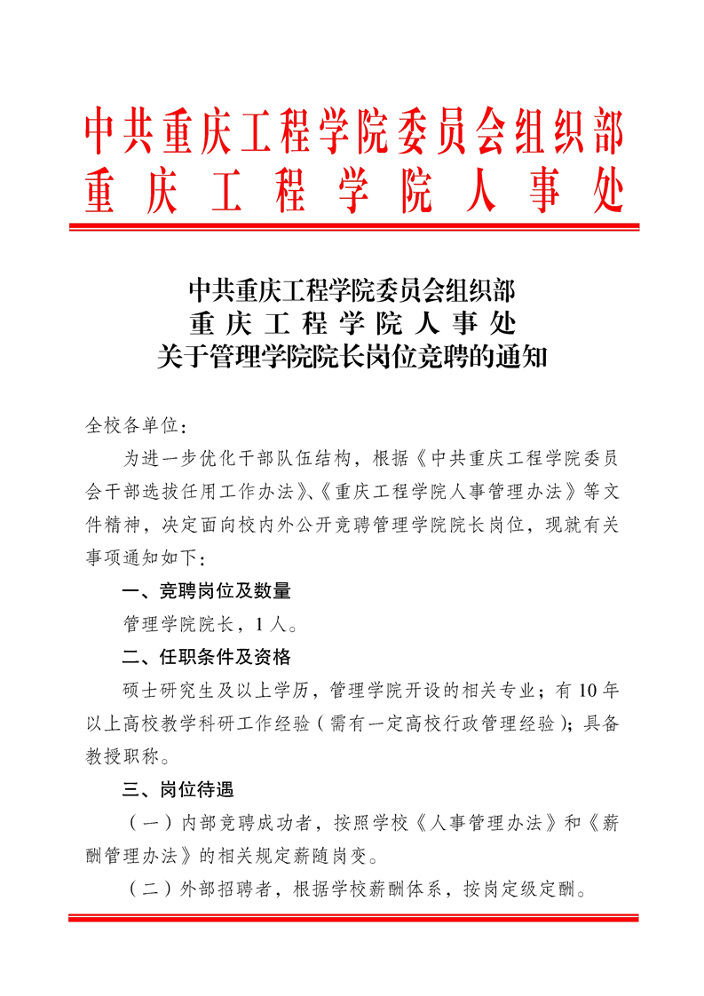 关于管理学院院长岗位竞聘的通知
