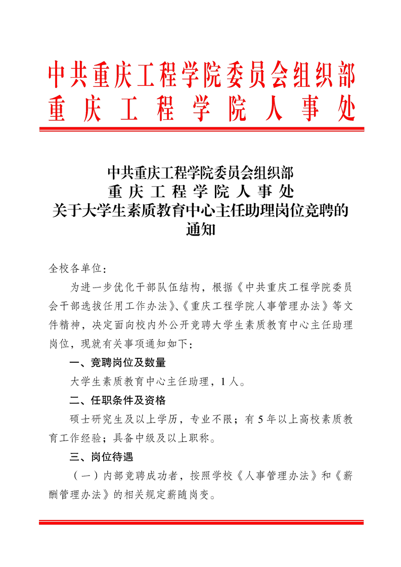 关于大学生素质教育中心主任助理岗位竞聘的通知
