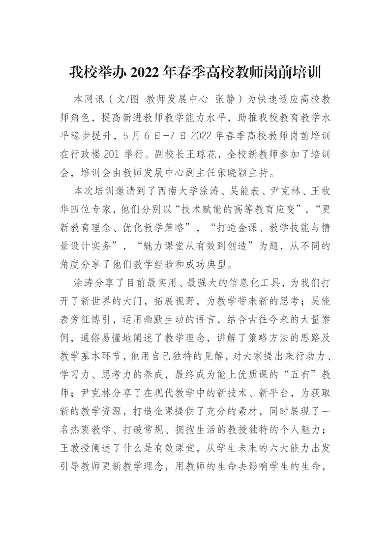 我校举办2022年春季高校教师岗前培训